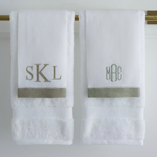 Nantucket Basket Hand Embroidered Guest Towel - Set of 2