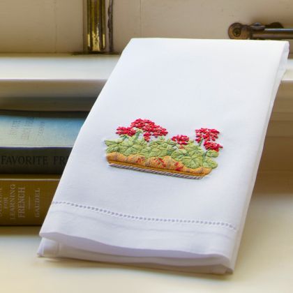 French Geranium Hand Embroidered Guest Towel - Set of 2