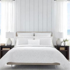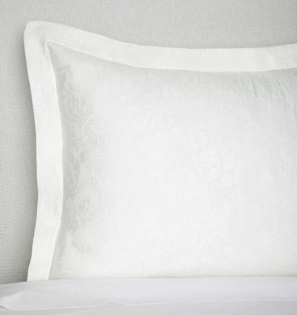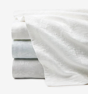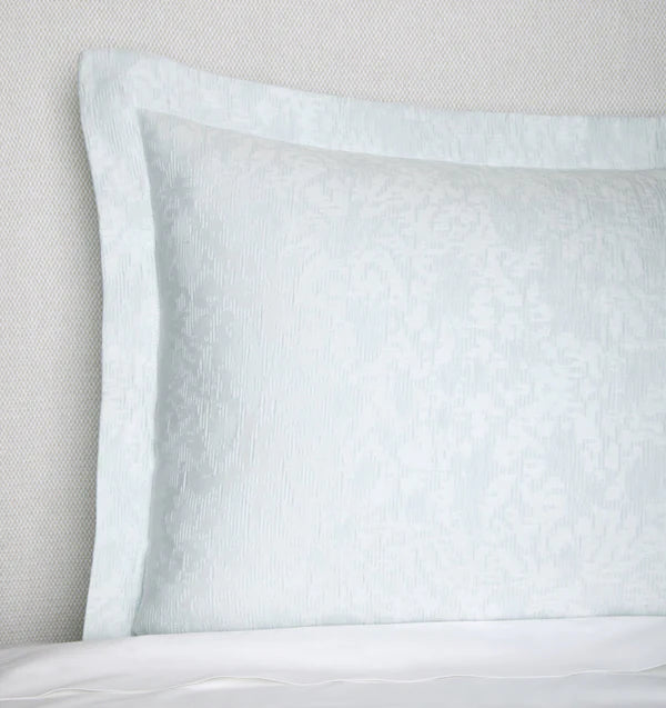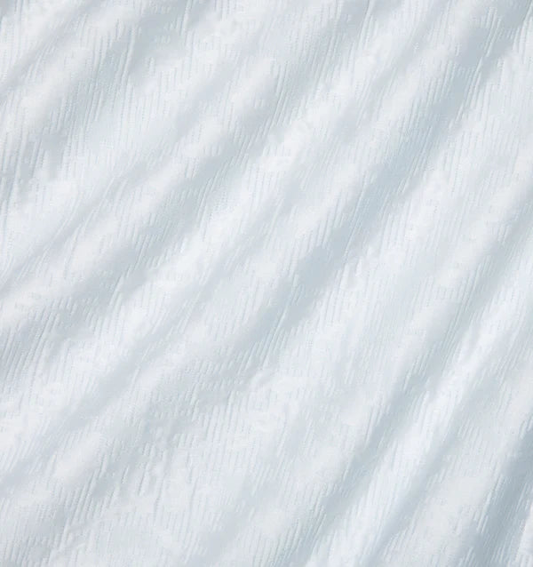 Aldino’s dappled texture is created by overlaying an abstract sateen weave pattern over a linear background—realizing a dreamy surface reminiscent of the glistening waters flowing through rocky, mountain creeks. Plain Hem with a 2" flange.