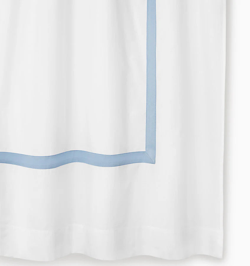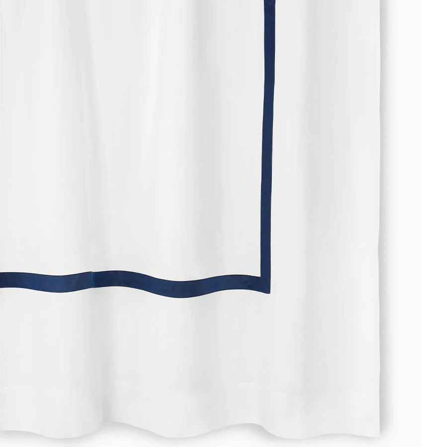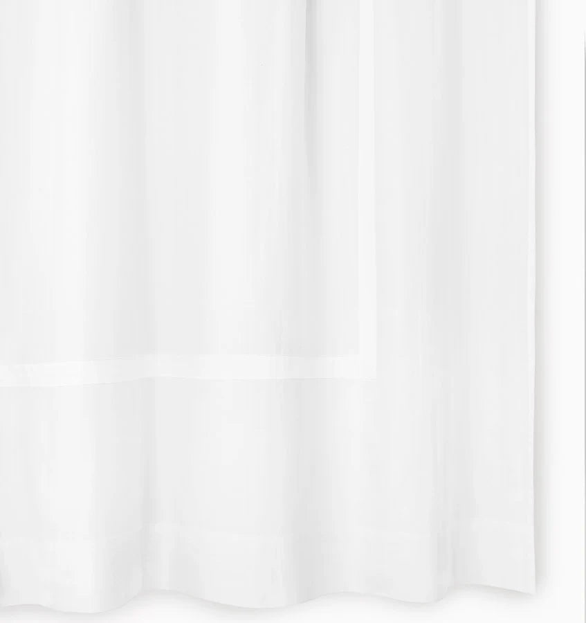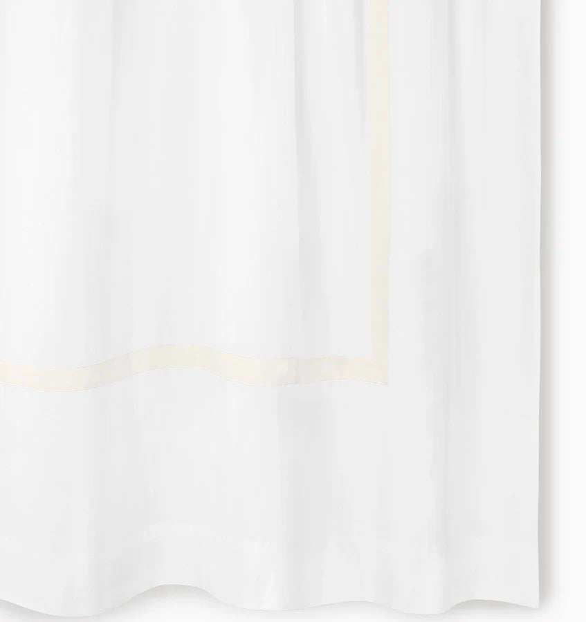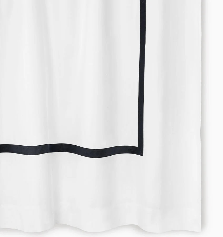 The Estate shower curtain epitomizes minimalist sophistication. Crafted from long-staple cotton percale, its pure white canvas is framed by a sateen appliqué square border in six neutral and earthy tones. Every detail, from the plain hem to the discreet front placket hiding buttonholes, reflects meticulous consideration. This curtain transforms the mundane act of showering into a luxurious experience, where simplicity speaks volumes and elegance reigns supreme.