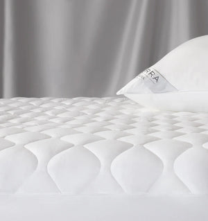 A restful night begins with the right mattress foundation. Sferra's waterproof mattress pads, generously sized to fit today’s mattresses, feature small baffles filled with soft, supportive pluma-fil down alternative for added cushioning and comfort.