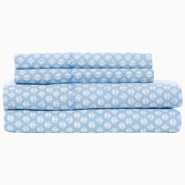 The signature Bindi print is now available as an organic sheet set. This classic floral print in a light, yet saturated hue, adds a perfect touch to any bedroom.