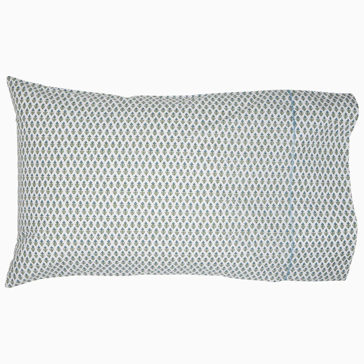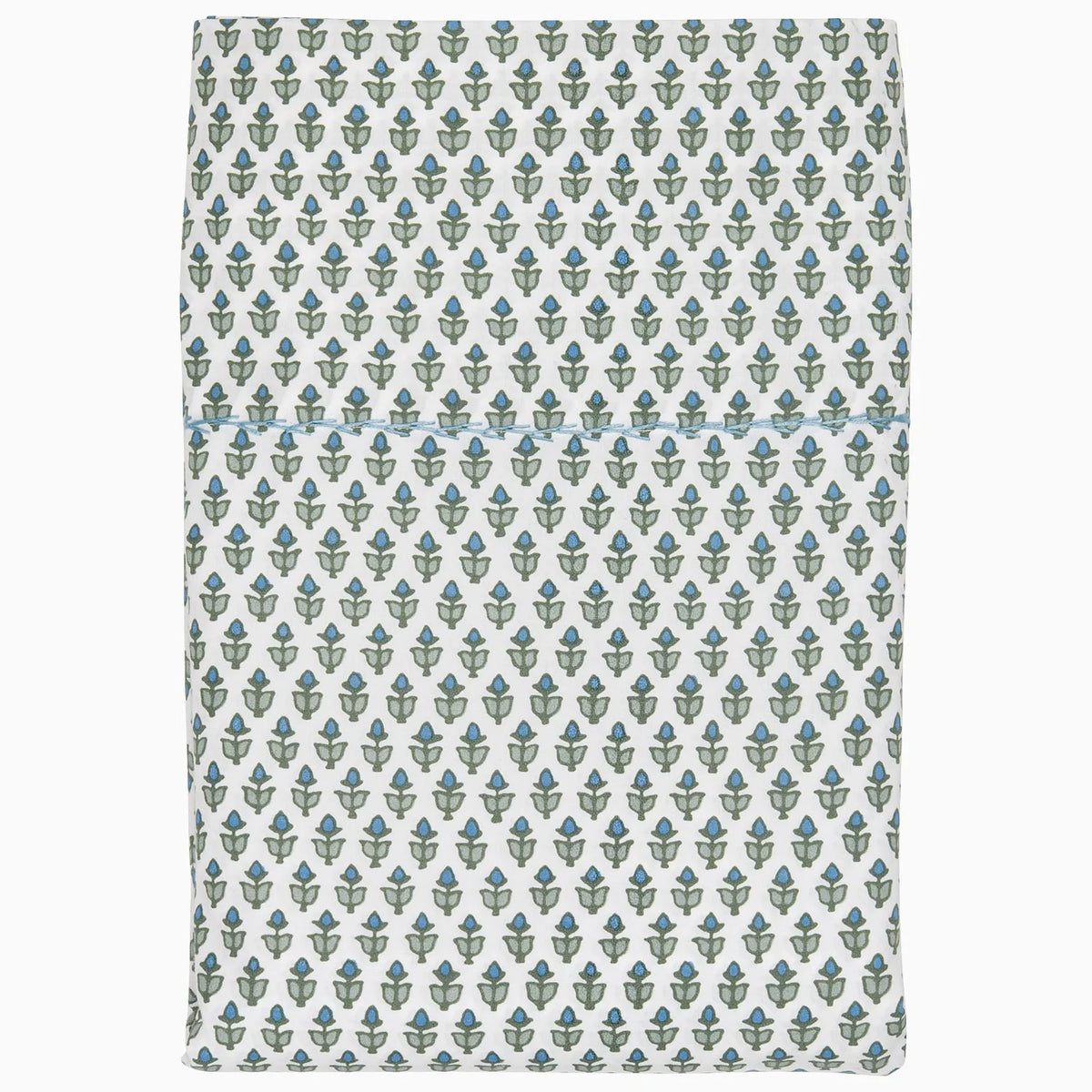 This print plays well with many of our duvets and quilts. The perfect organic 400 thread count percale cotton is from the southern India and is 100% long-staple for a luxurious feel and superior softness. Sheets and pillowcases are hand embroidered. Duvet has 1 1/2' flange, button closure, and inner ties to secure duvet insert.
