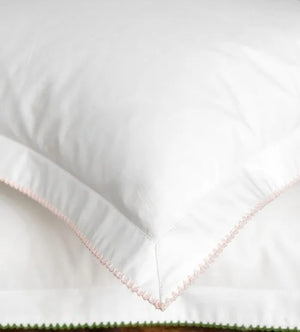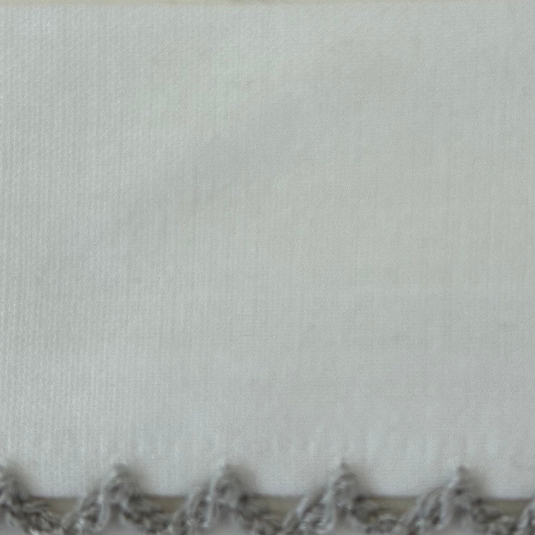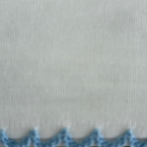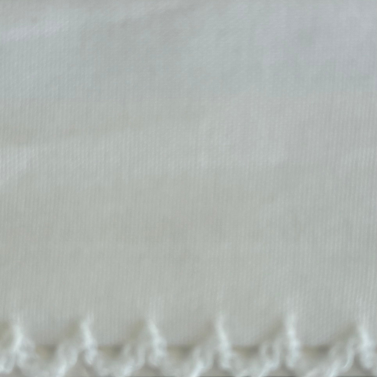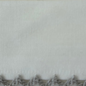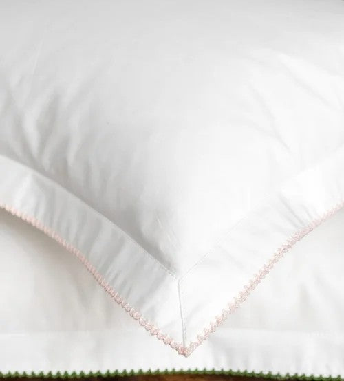 The Callie bedding collection features a delicate scallop edge embroidered with fine crochet stitch on a white background.