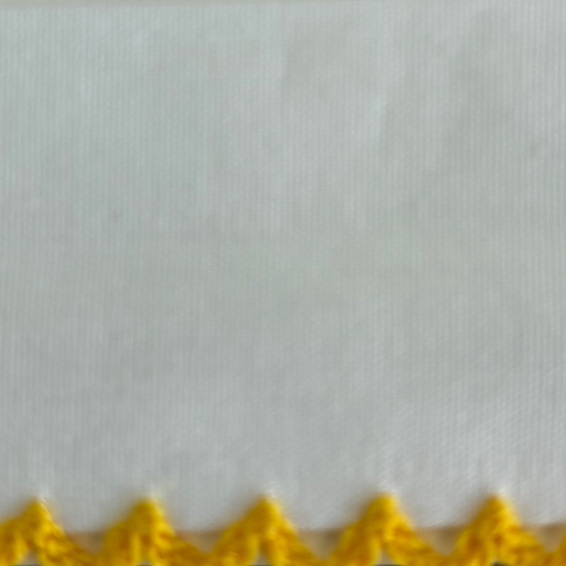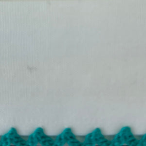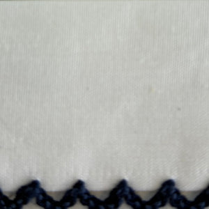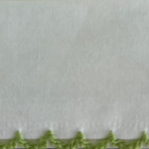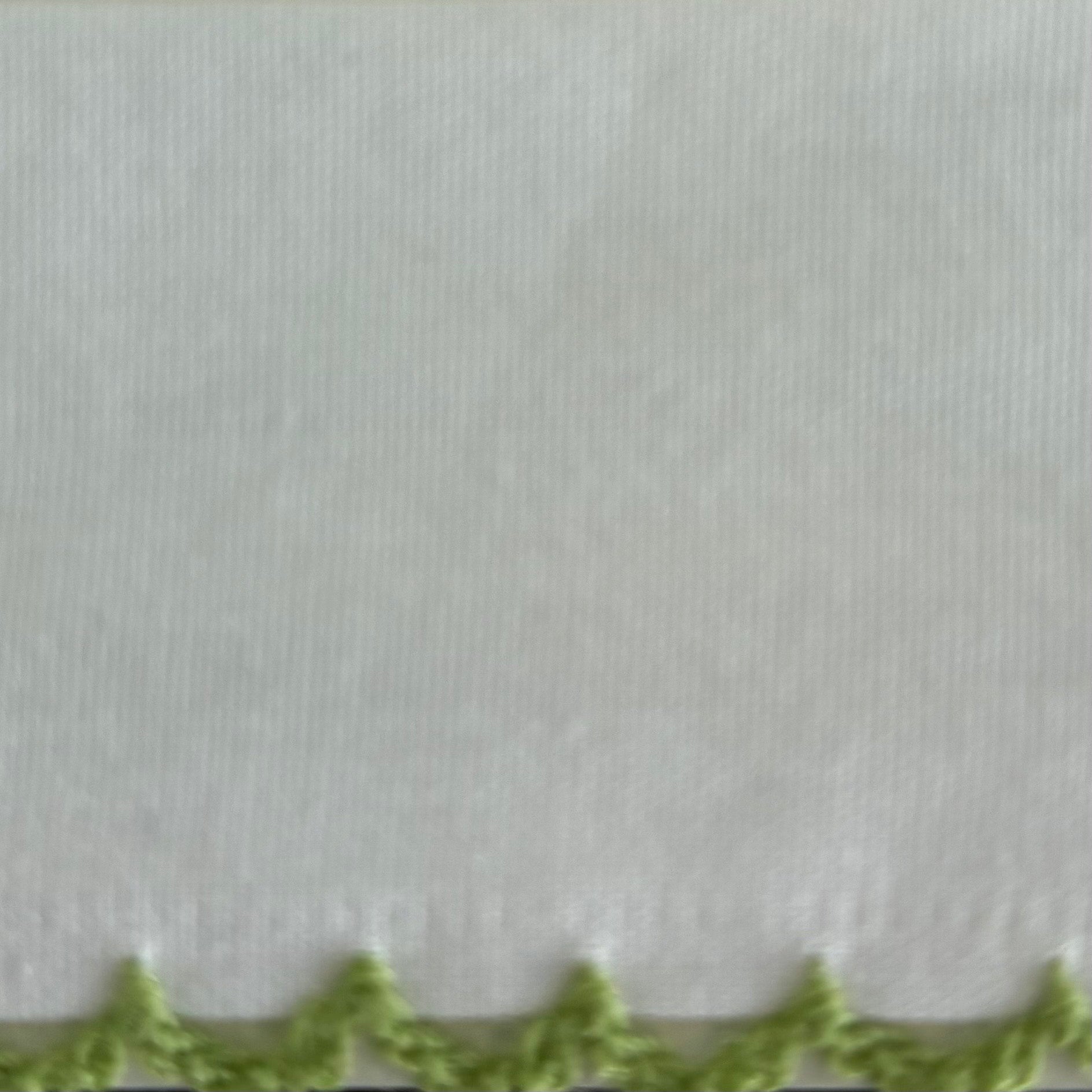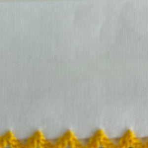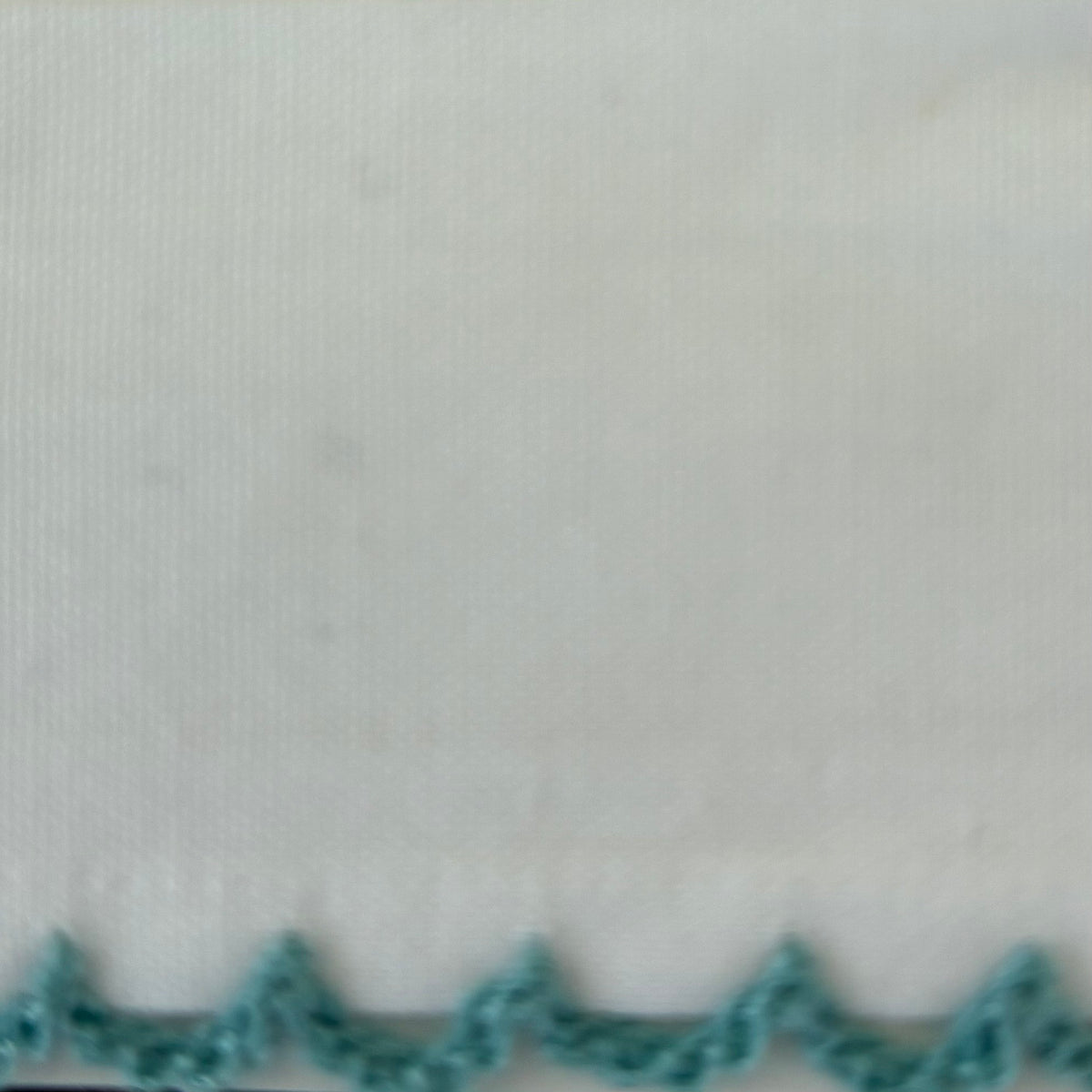 The Callie bedding collection features a delicate scallop edge embroidered with fine crochet stitch on a white background.