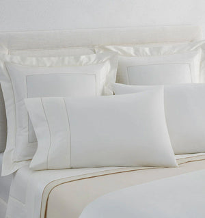 A celebration of a lavish and comfortable life, this refined sheeting has the look of luxury and the feel of opulence. An intricate jacquard applique design is nestled between two rows of precise hemstitching to create a refined border along the edges of our Ne Plus Ultra Milos solid sateen. View Capri Duvet Cover & Shams