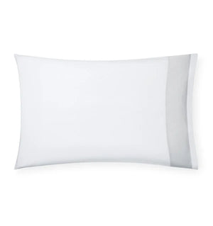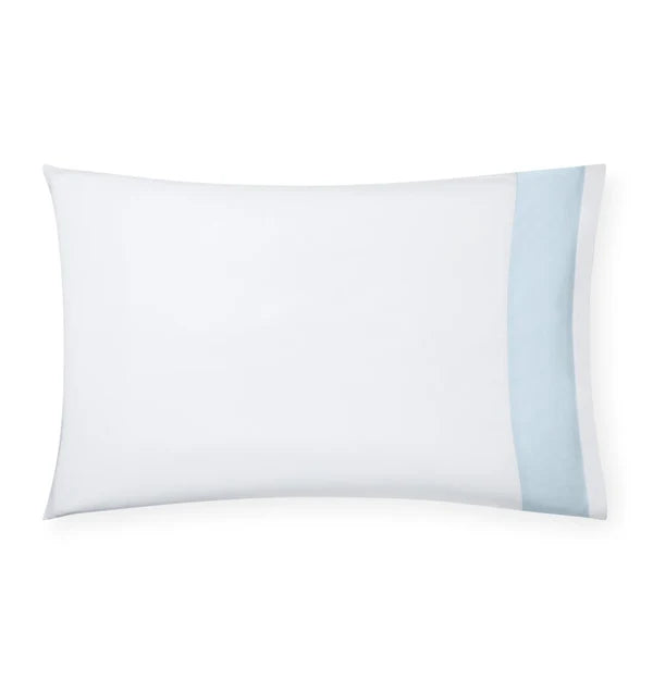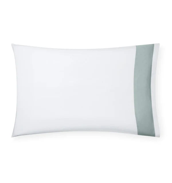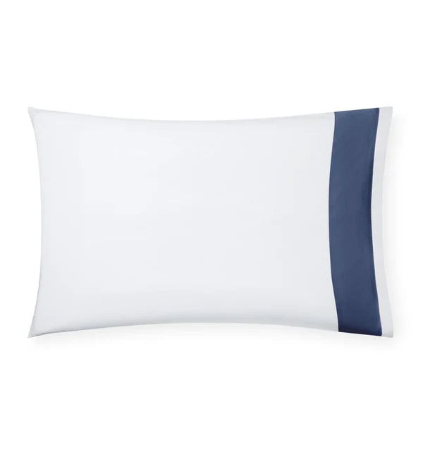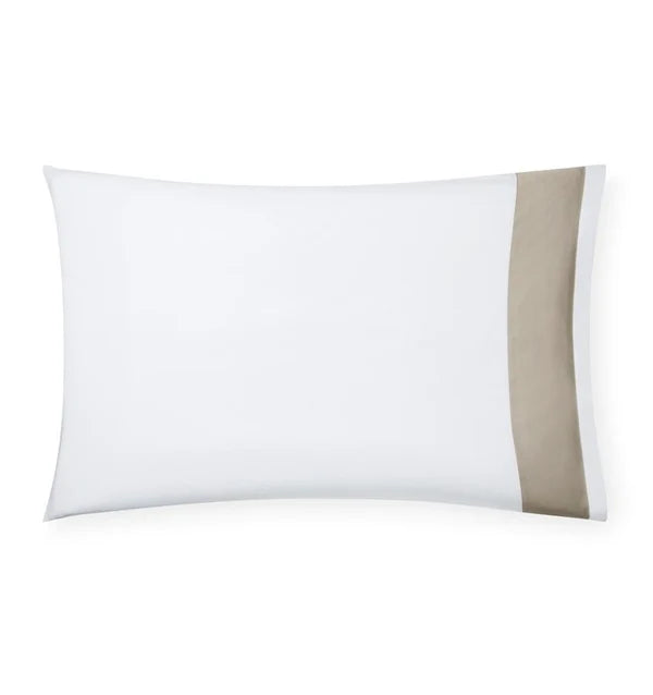 On the front, a white canvas is framed by a contrasting tone, modern, meet art. Flat Sheet and Pillowcase cuffs: 4-inch appliqué.