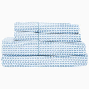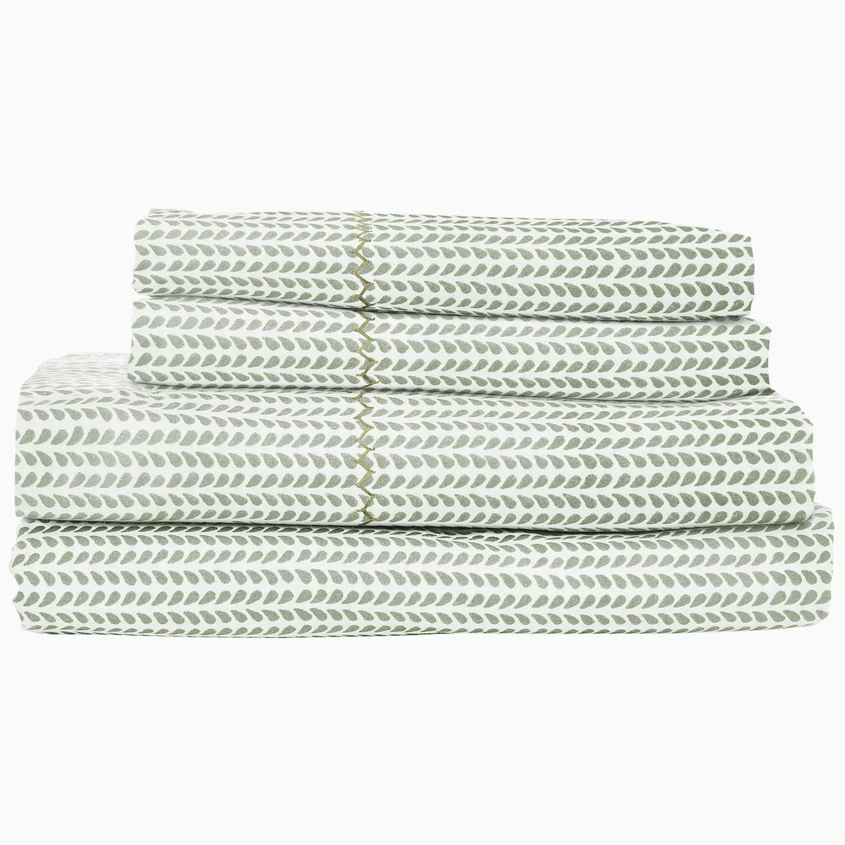Printed on organic 200 thread count pure cotton percale: a finely woven, durable fabric that is exceptionally smooth to the touch, made from long-staple, combed cotton for superior softness. Stitching is hand embroidered.