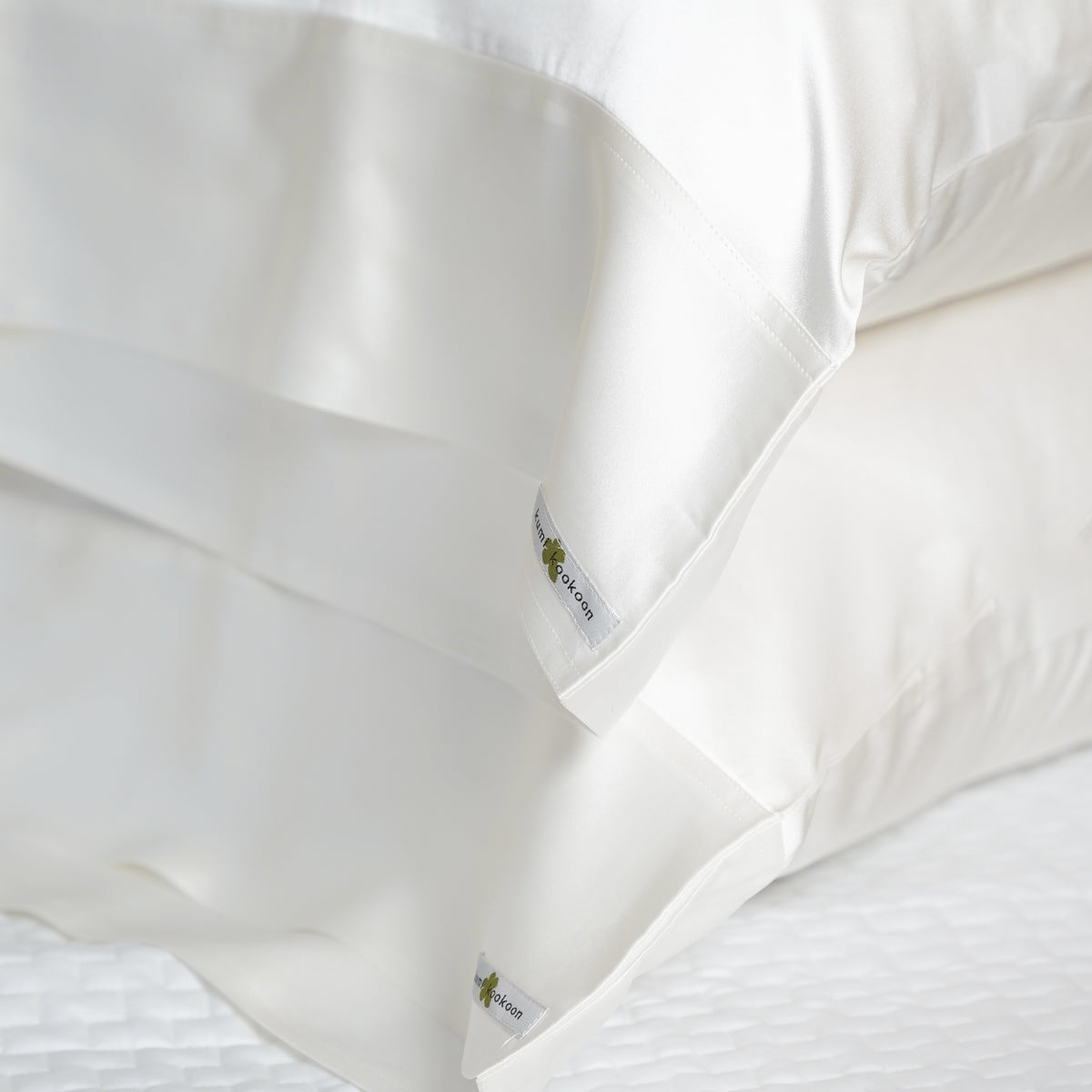 Kumi Kookoon pillowcases are essential elements of silk bedding. Simple, yet luxurious. Made in a classic envelope style, these pillowcases are the perfect companion to our silk-filled pillows. Sleep more soundly knowing that sumptuous silk charmeuse is naturally hypoallergenic and composed of 18 essential amino acids, which improve your skin and hair. 100% natural, and allergen-free.