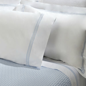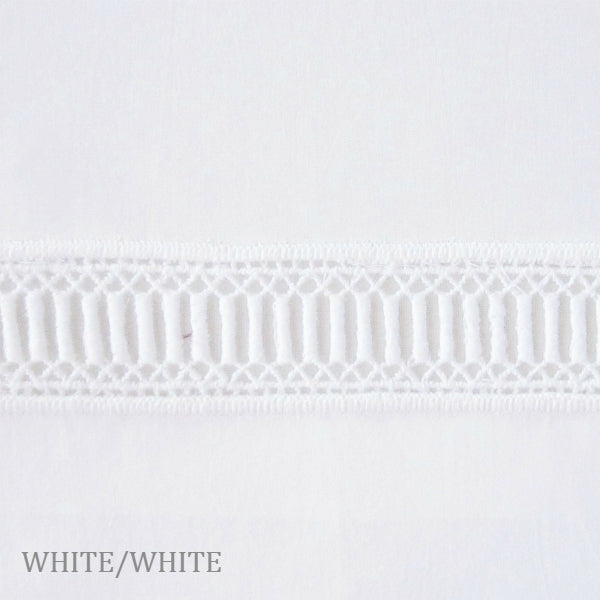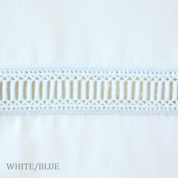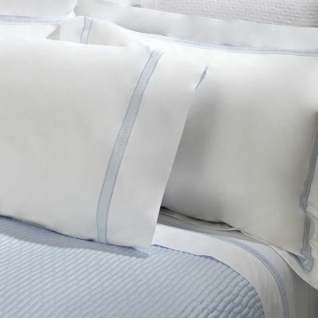 Inspired by Greek Doric architecture, this classic lace inset is applied to a 500 thread count percale sheeting fabric. Made from 100% Egyptian cotton, Italian percale, it adds a sense of style and grace to the bedroom.
