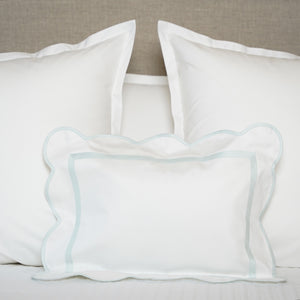 Elisabetta features contrast color scalloped trim flanges and a matching narrow inset band of applique. This item can be customized further, if of interest please call us at (203)-629-3659.