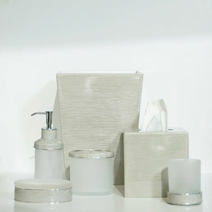 These Essential Bath Accessories come in classic silhouettes. Each piece is created by artisans by hand, featuring hand-painted enamel with fine silver trim. Small irregularities in shape, surfaces and finishes are hallmarks of such craftsmanship and are not defects.