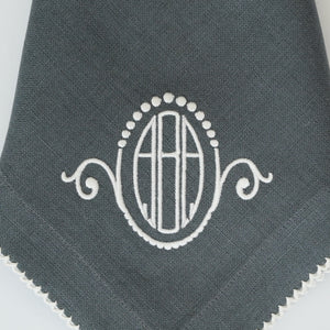 Elevate your table setting with our Intricate Mono Napkins, crafted from the finest quality linen. Each napkin features a beautifully stitched monogram detail, offering a timeless and personal touch.