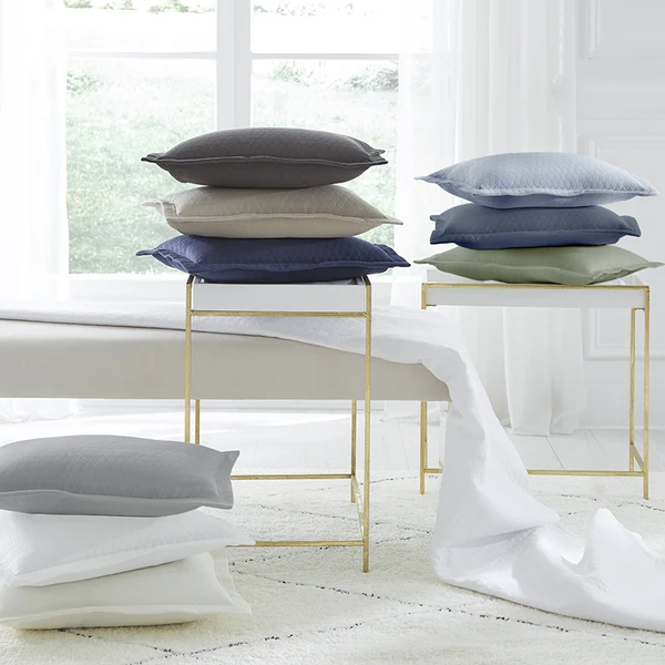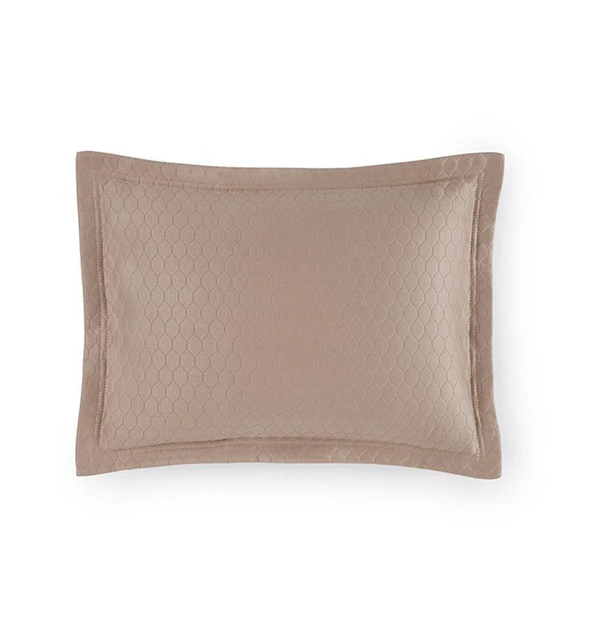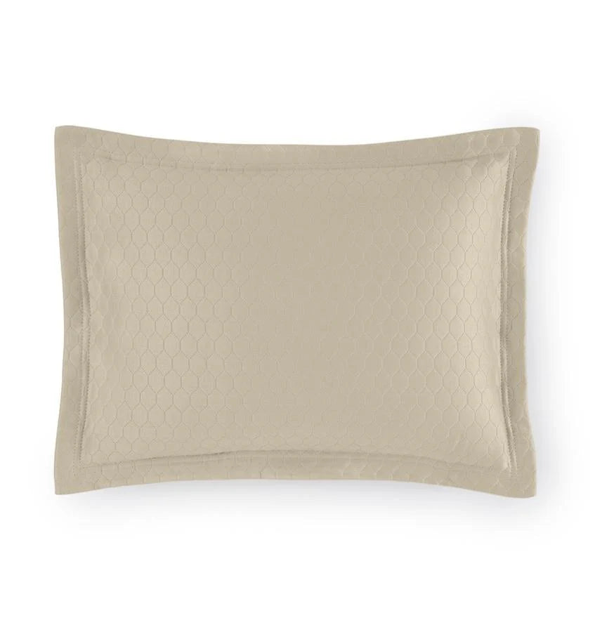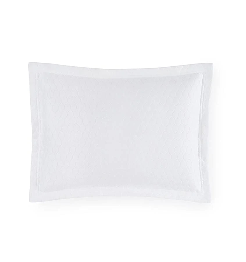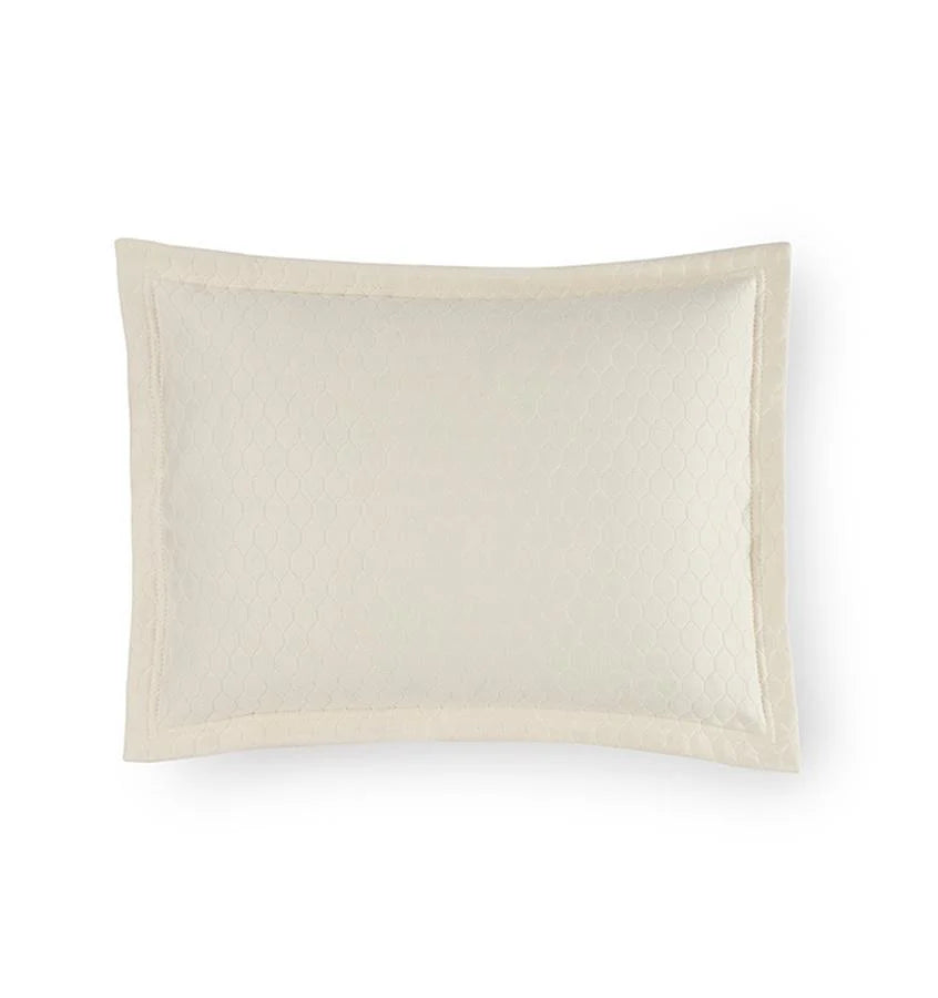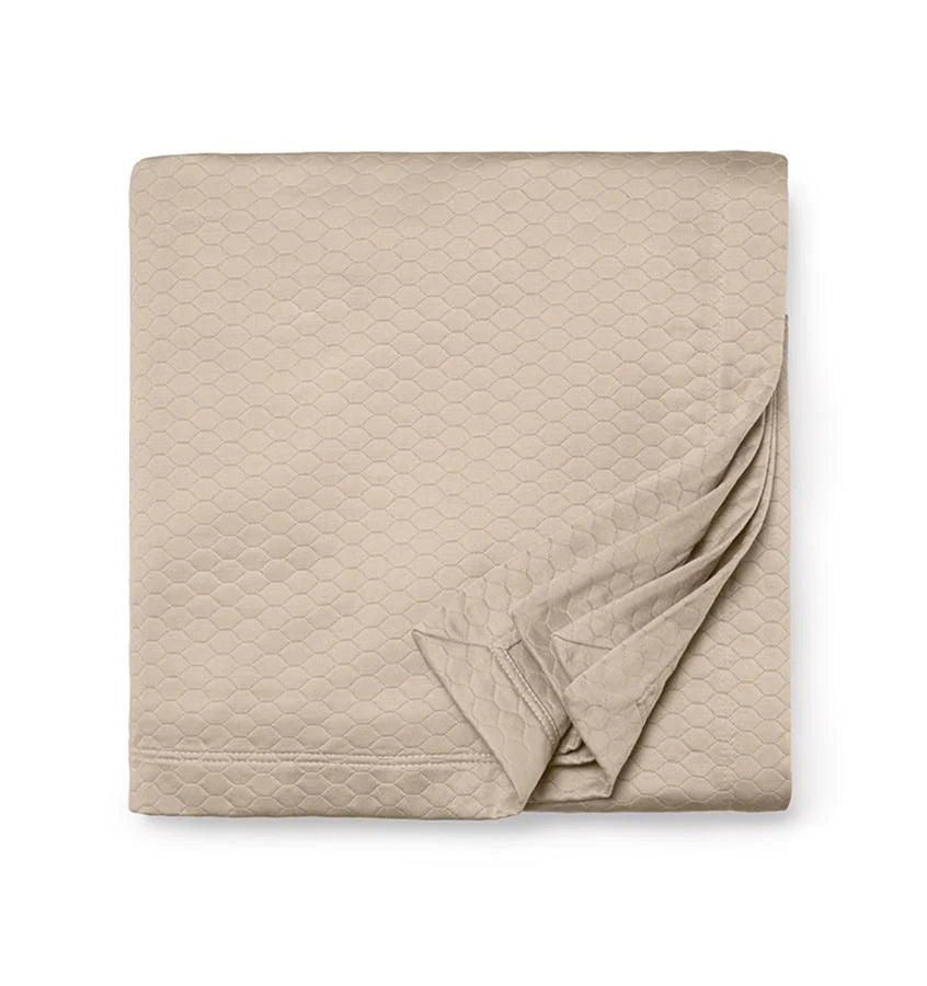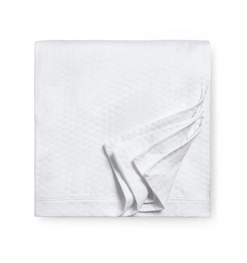 Sferra's Favo coverlet bears a lovely honeycomb pattern, it’s woven to such a smooth, soft, and supple hand that it possesses a wonderful drape, and will look just-so on a polished or casual bed. Plain hem with double needle stitching. View coordinating Favo Bed Skirt