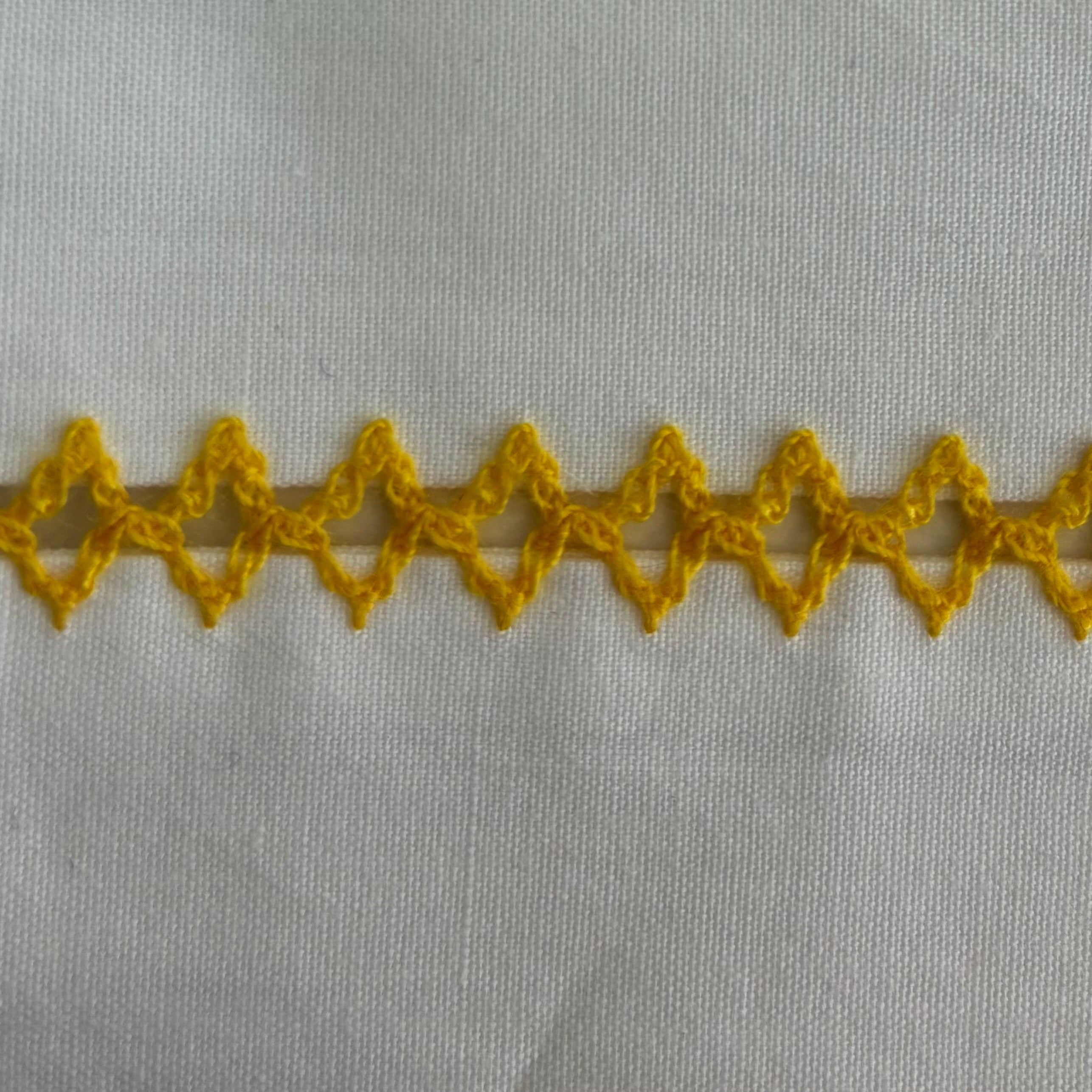 Giulia has a unique embroidered design, resembling a delicate crochet stitch and bourdon stitch.