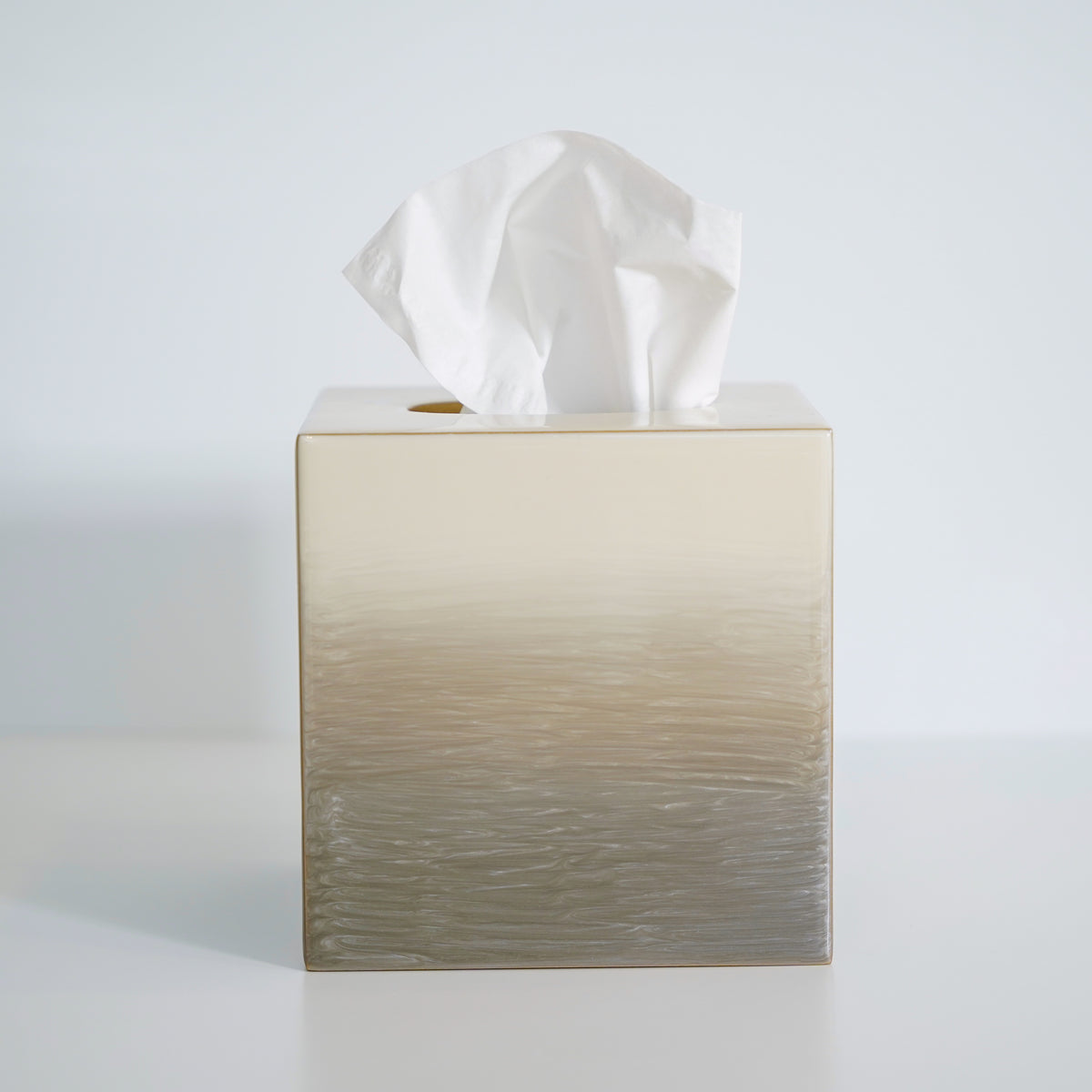 Mike + Ally artisans create a variegated pattern using no less than three tints of enamel. The finished 'ombre' effect provides a soothing accent for the contemporary bathroom suite.