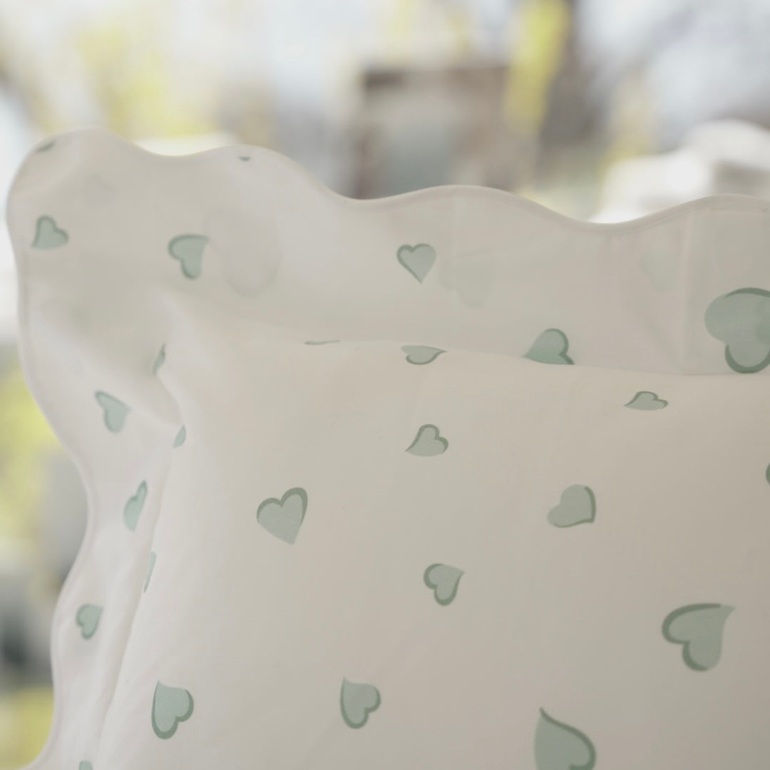 One of our best-loved sheet collections. Cheerful hearts scattered all-over pattern on a white sateen background. This timeless design is perfect for all year round. Finished with 1-Line of White Satin Stitching Over Seam.