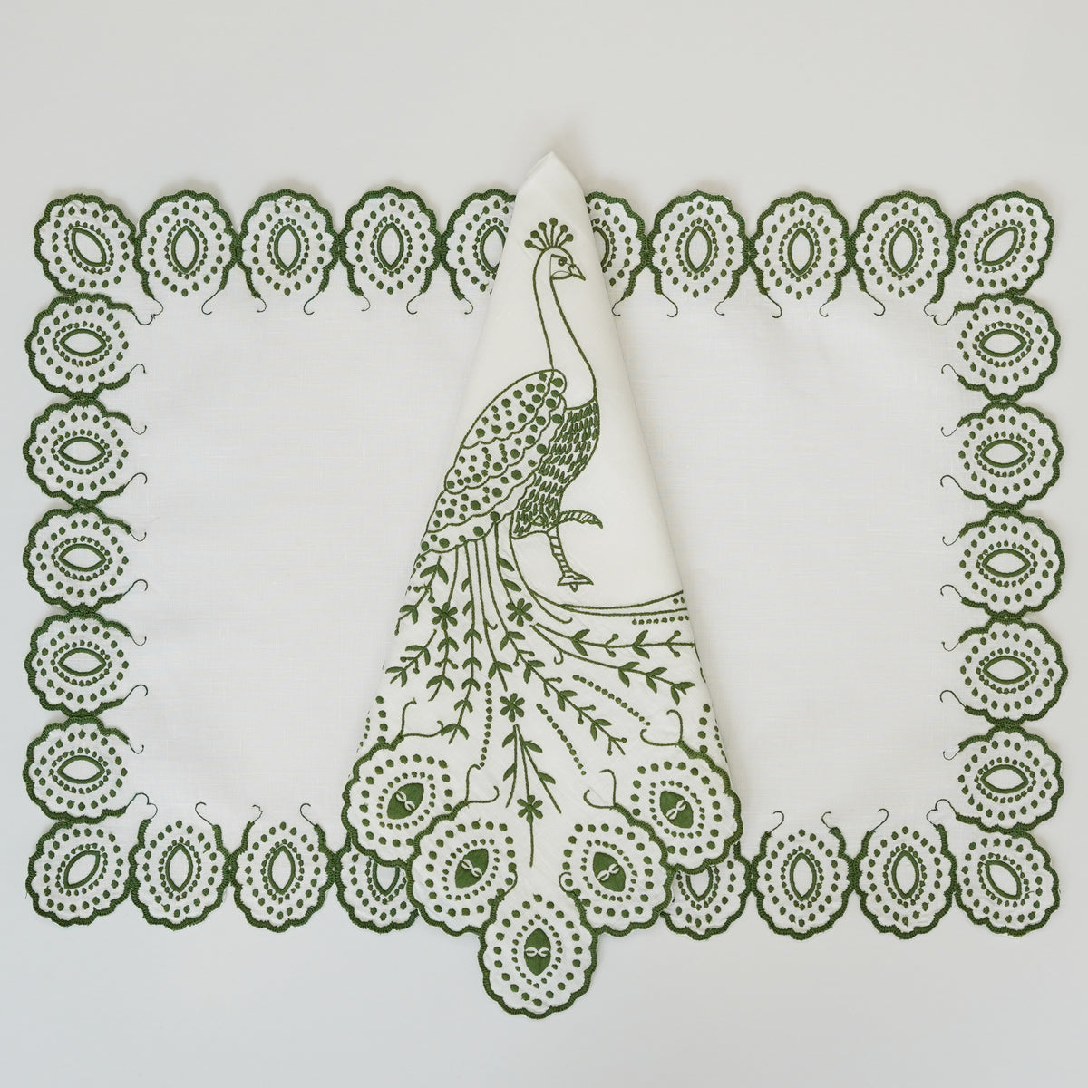 Elevate your table with the graceful beauty of our Intricate Peacock-Inspired Placemats. Crafted from luxurious linen, each piece showcases an elegant, embroidery design that draws from the flowing lines and natural symmetry of a peacock’s plumage.