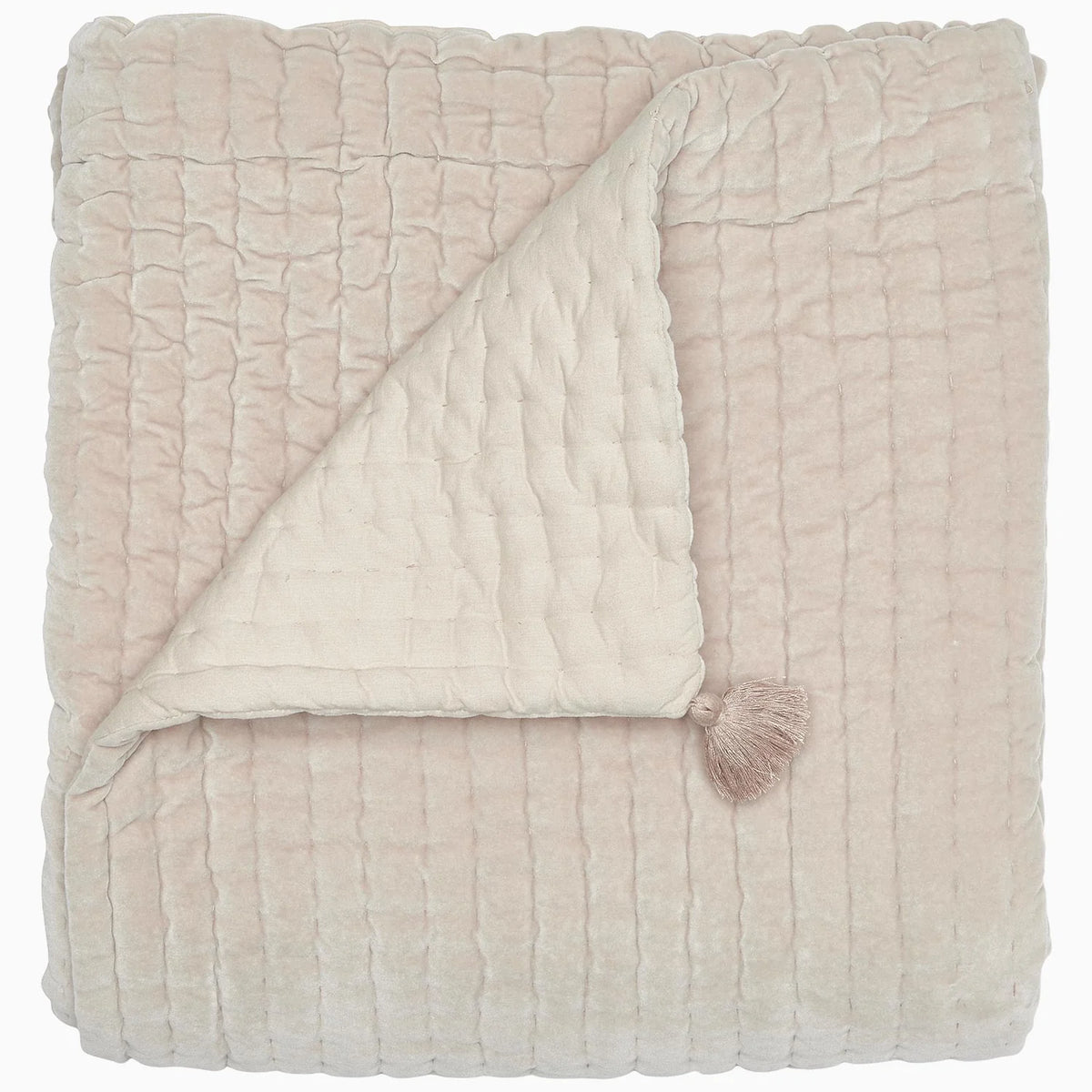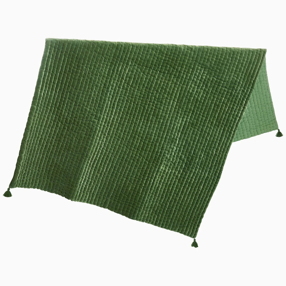 Soft and luxurious velvet, hand quilted by Indian artisans. Tassels on the ends for extra fanfare.