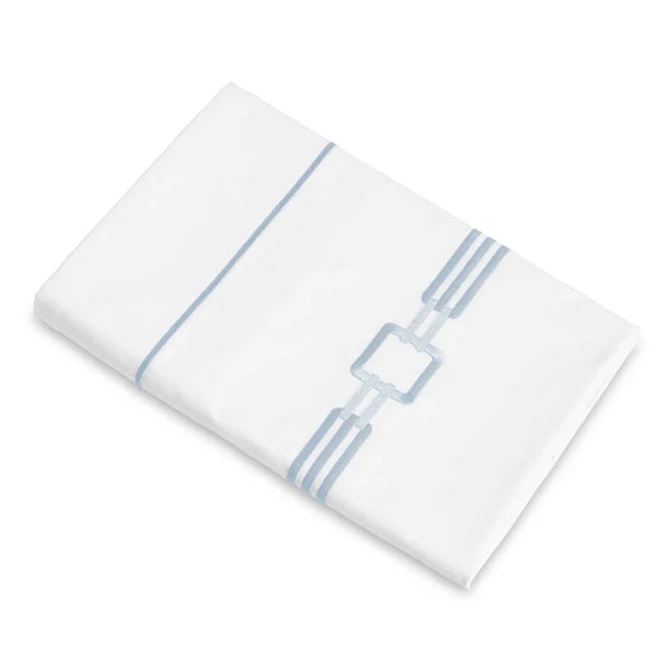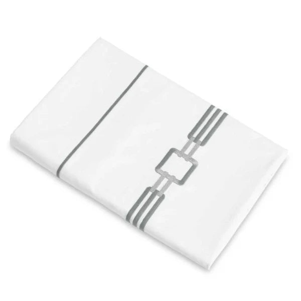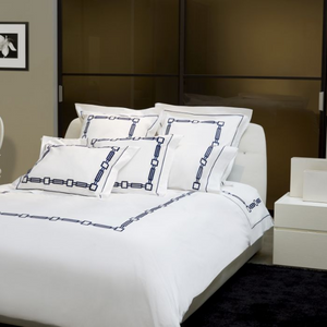 An embroidered collection on a white Supima cotton percale designed to adorn the bedroom. Duvet Covers have embroidery in U Shape with knife edge finish, button closure and ties inside. Shams have embroidery all the way around.
