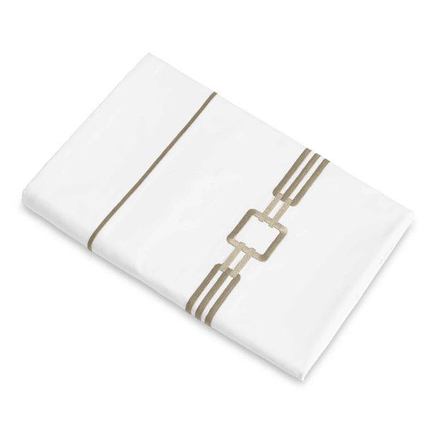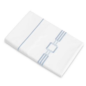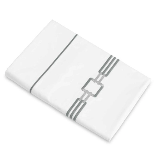 An embroidered collection on a white Supima cotton percale designed to adorn the bedroom. Flat sheets are finished with embroidery that returns to the backside, cases are finished with embroidery.