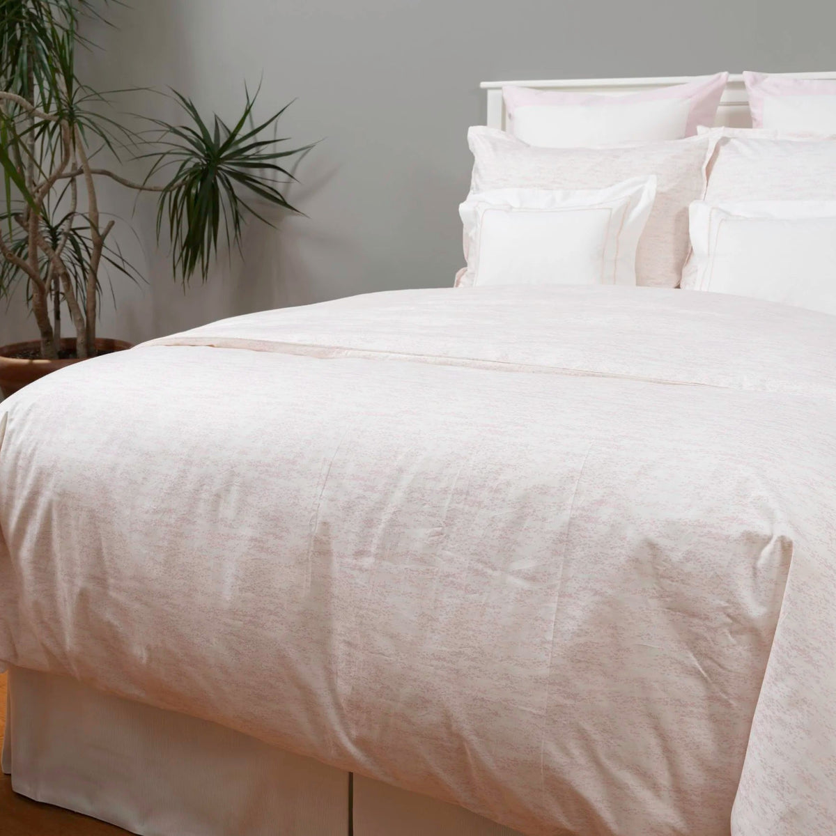 An all-over print with a splatter of color, re-imagined in three fresh colorways. Percale finished in Italy. Manufactured by hand in the USA. Shams have a 1" Flange. Duvet Covers are self-reversing with a plain hem.