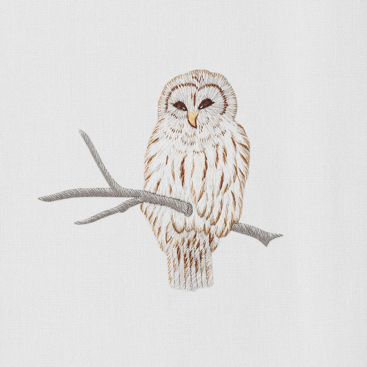 Snowy Owl Hand Embroidered Guest Towel - Set of 2