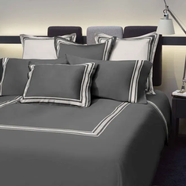 This classical style, with a modern update and a simple, unpretentious luxury, are Tivoli’s key features. Duvet Cover and shams are finished with a 2 3/4" applied border, shams are all the way around duvets are U Shape, knife edge finish with button closure and ties inside.