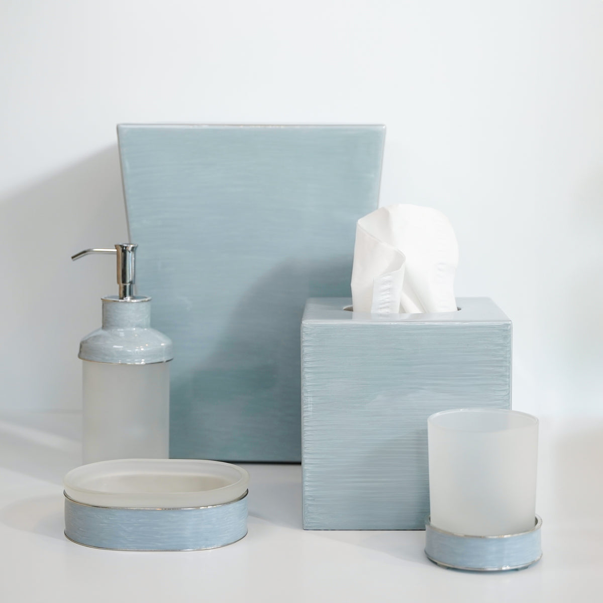 The Essentials Bath Accessories come in classic shapes and beautiful colors. Less is more with these indispensable basics. Each piece is created by artisans, featuring hand-painted enamel with gold or silver trim. Small irregularities in shape, surfaces and finishes are hallmarks of such craftsmanship and are not defects.